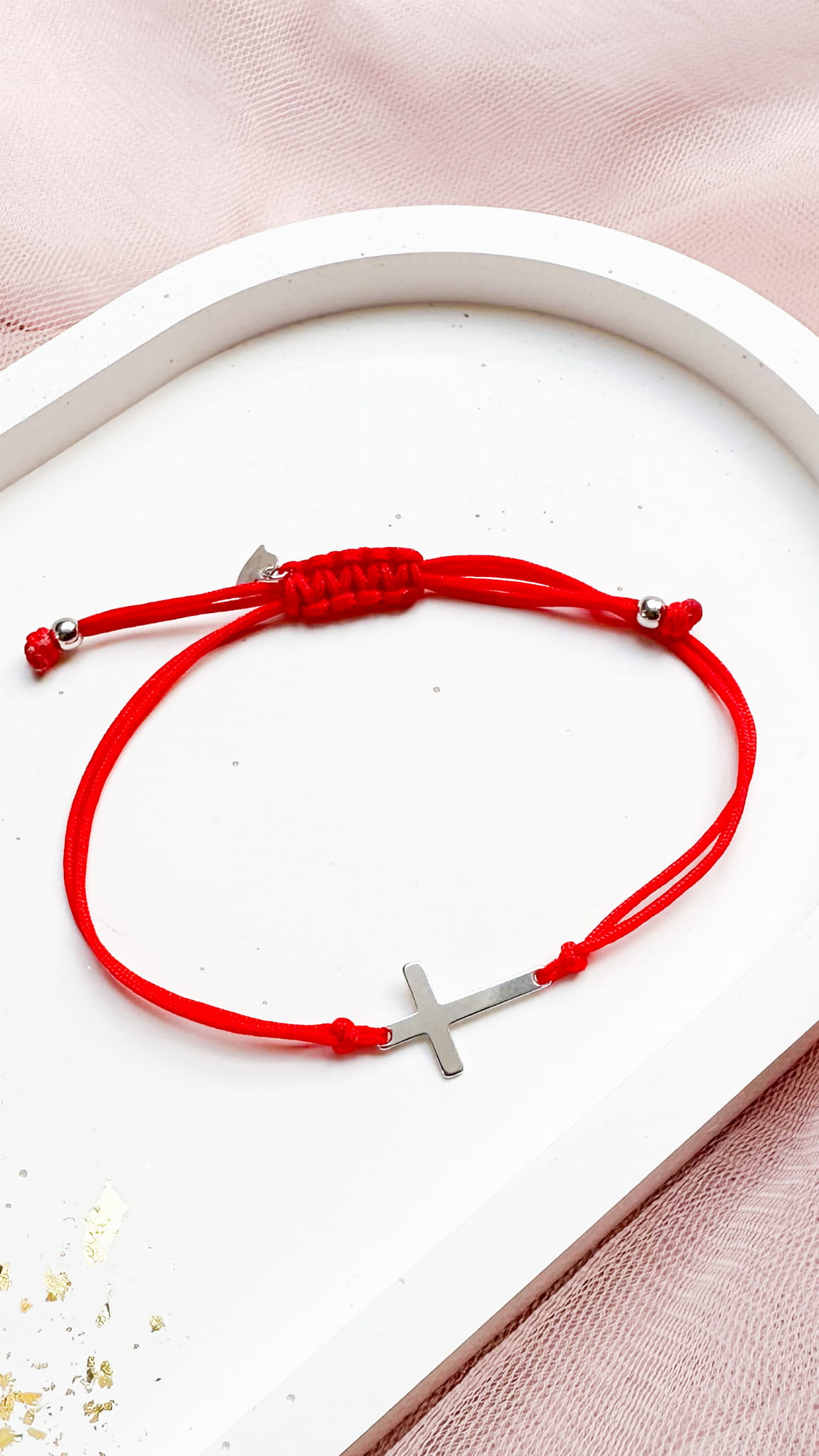 Bransoletka SIMPLICITY ze srebrnym krzyżykiem na czerwonym sznurku