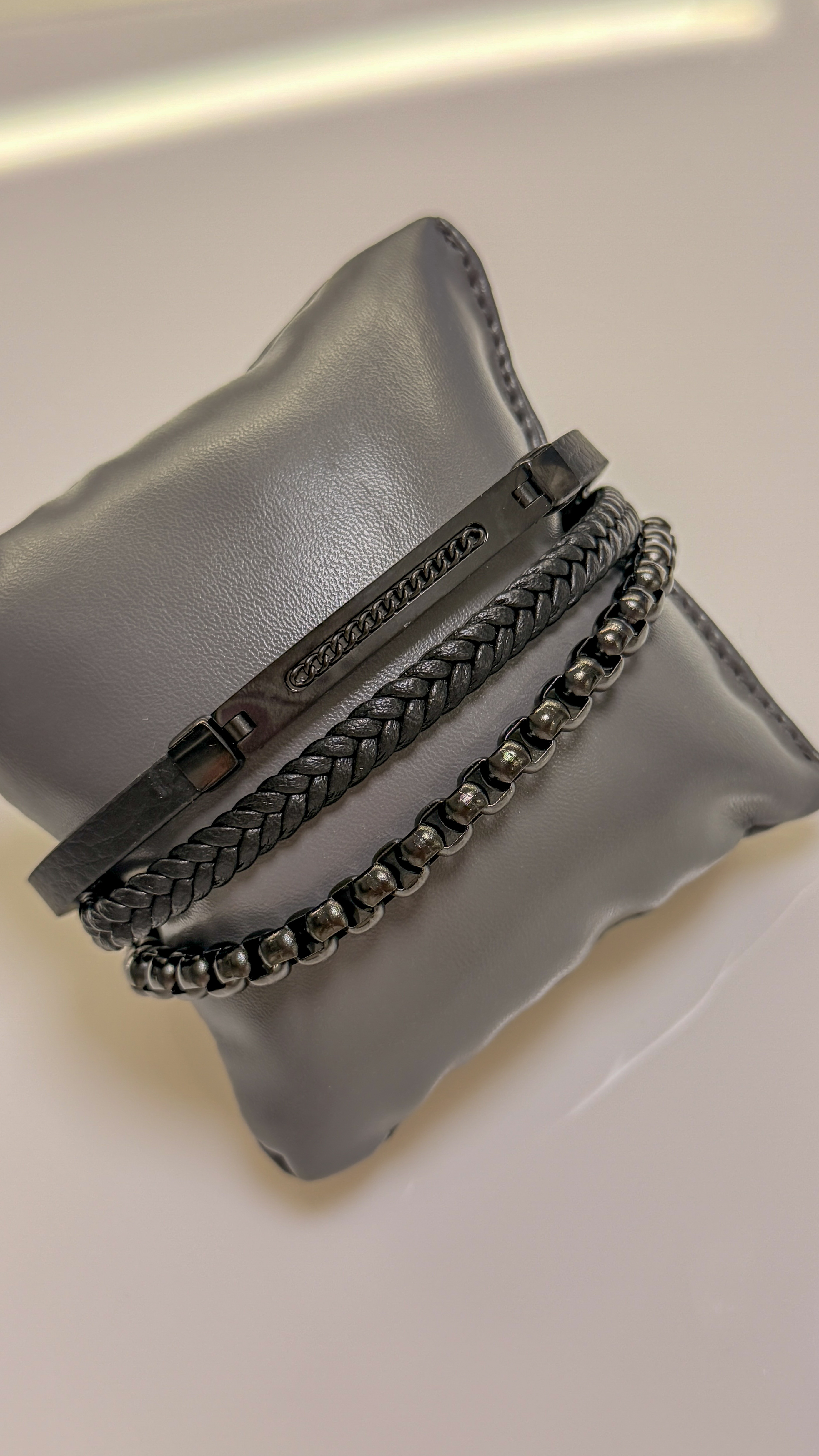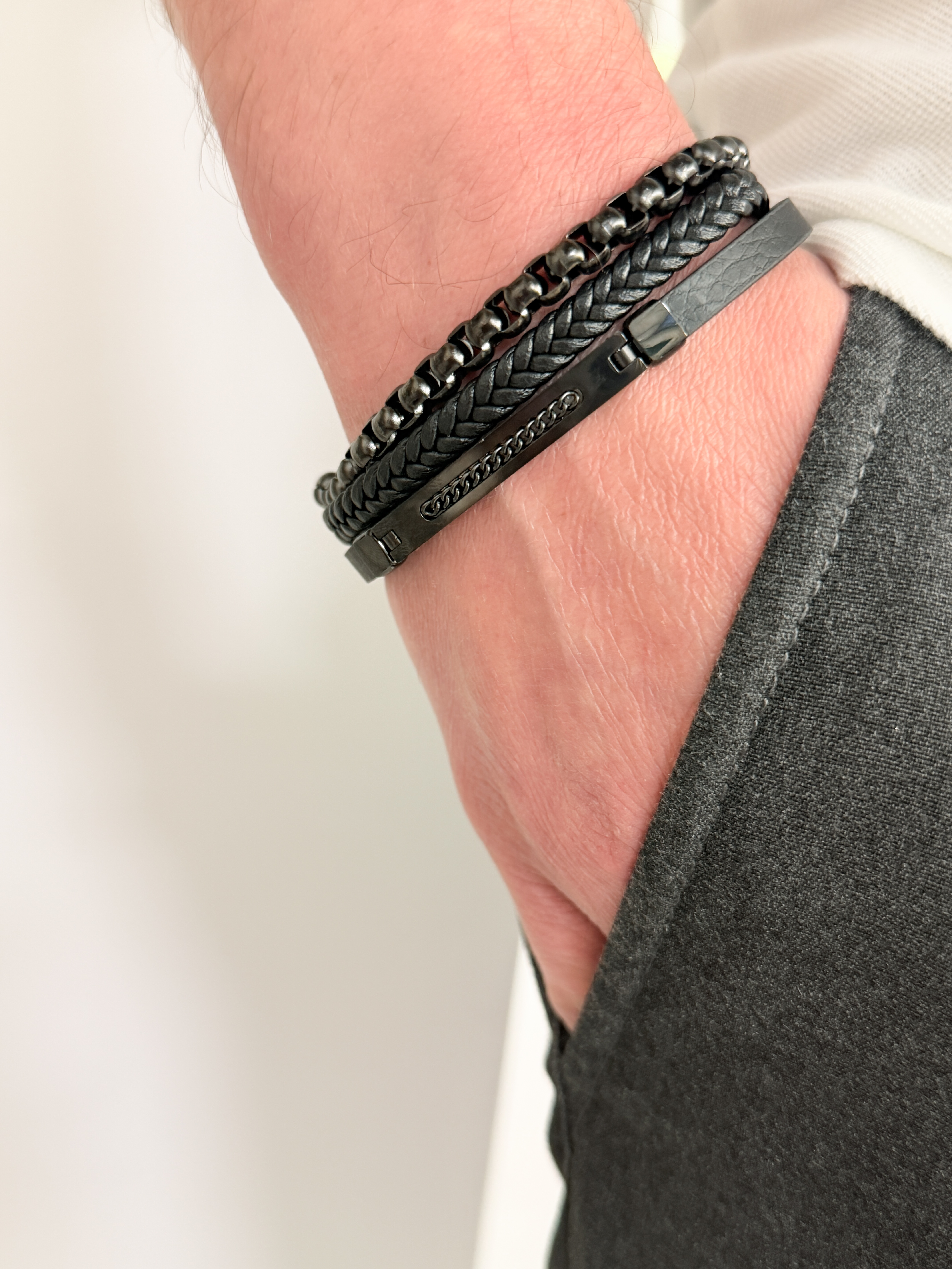 Męska bransoleta wykonana z naturalnej skóry oraz stali szlachetnej 316L, odpornej na uszkodzenia i hipoalergicznej. Prosty, nowoczesny design sprawia, że pasuje zarówno na co dzień, jak i do bardziej eleganckich stylizacji. Model posiada trójdzielny magnes, który ułatwia zakładanie i jednocześnie pozwala regulować długość. Po usunięciu jednego z segmentów można dopasować bransoletę do indywidualnego obwodu nadgarstka. Maksymalna długość: 23 cm.