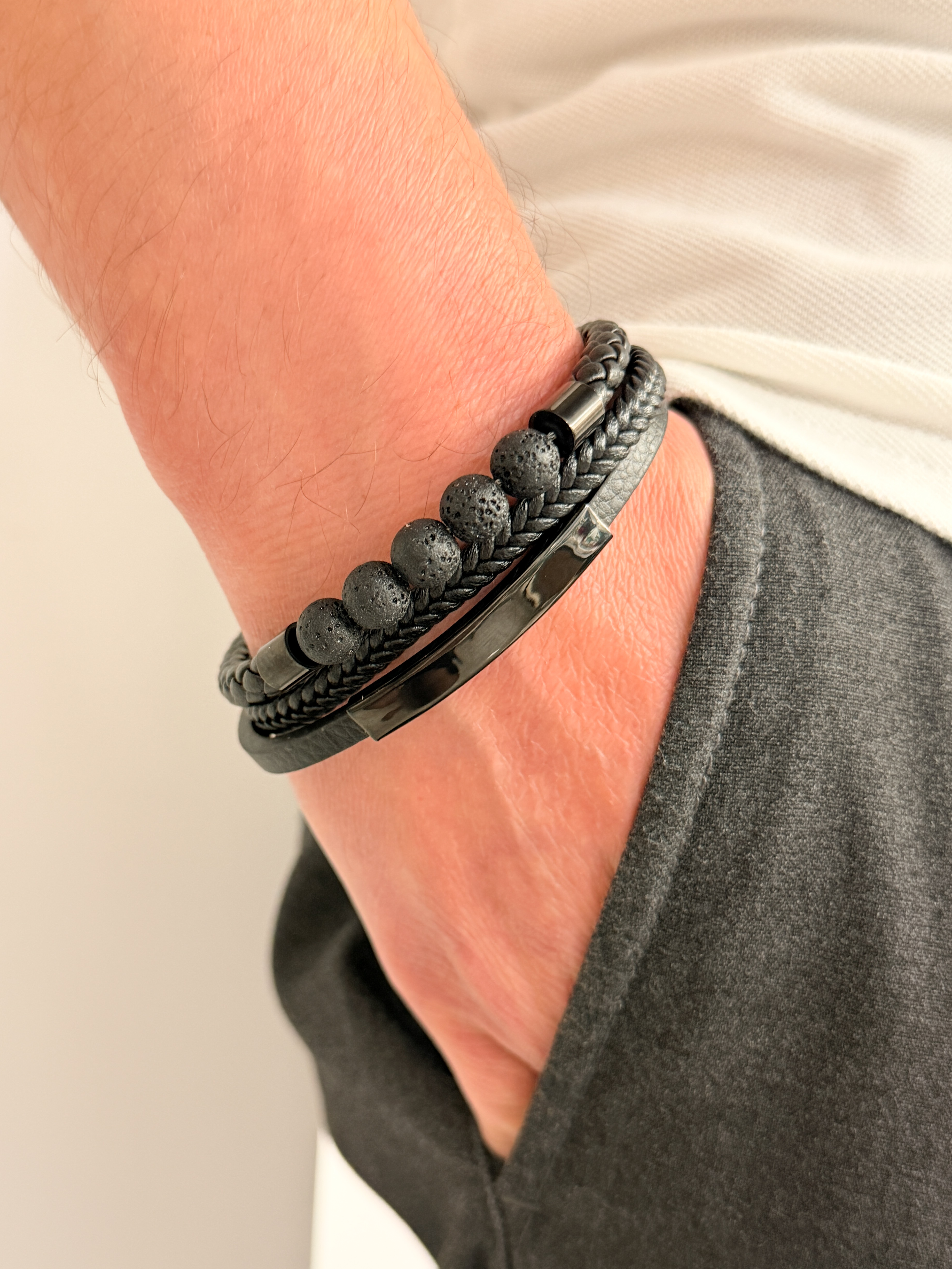 Męska bransoleta wykonana z naturalnej skóry oraz stali szlachetnej 316L, odpornej na uszkodzenia i hipoalergicznej. Prosty, nowoczesny design sprawia, że pasuje zarówno na co dzień, jak i do bardziej eleganckich stylizacji. Model posiada trójdzielny magnes, który ułatwia zakładanie i jednocześnie pozwala regulować długość. Po usunięciu jednego z segmentów można dopasować bransoletę do indywidualnego obwodu nadgarstka. Maksymalna długość: 23 cm.