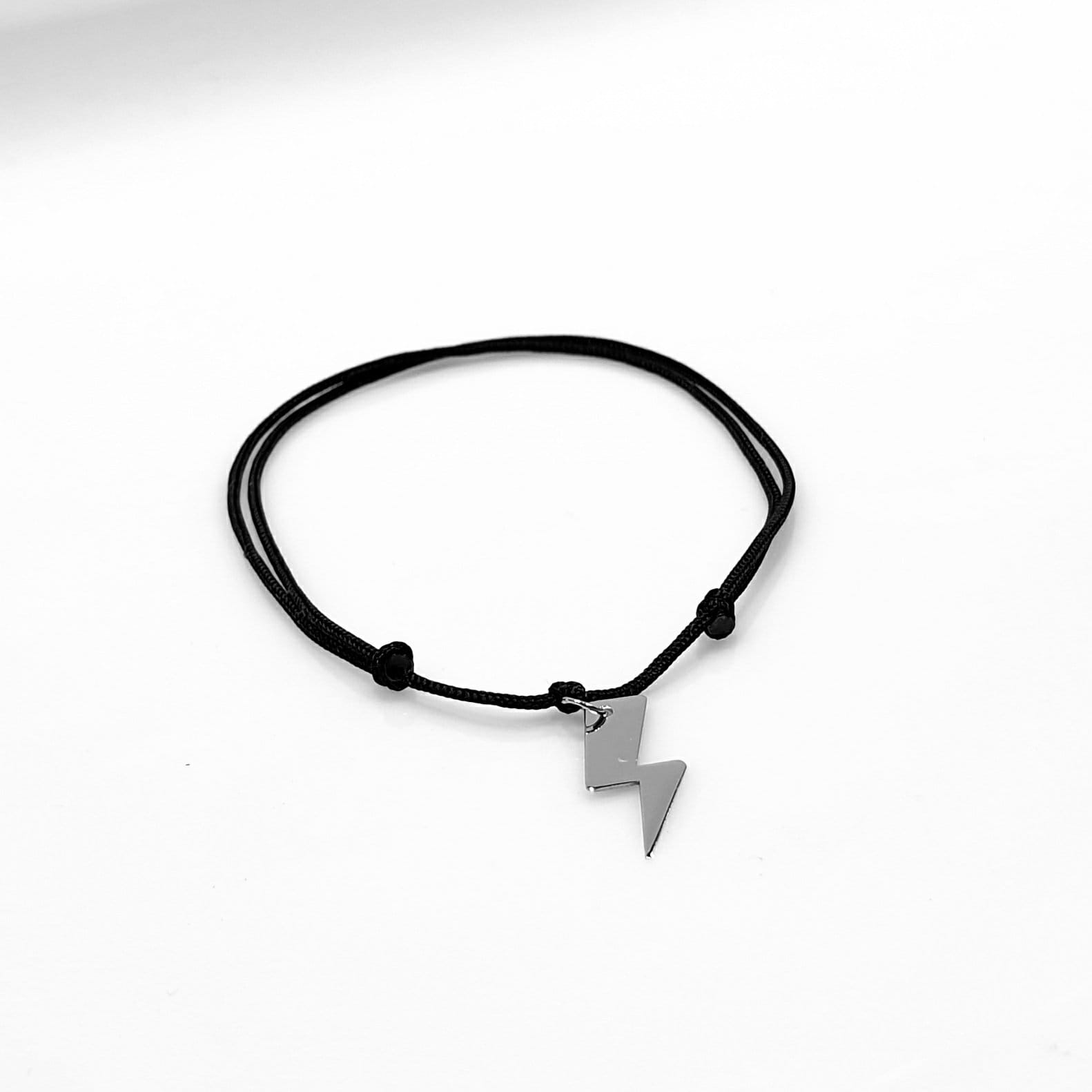 Bransoletka na czarnym sznurku ze srebrną błyskawicą