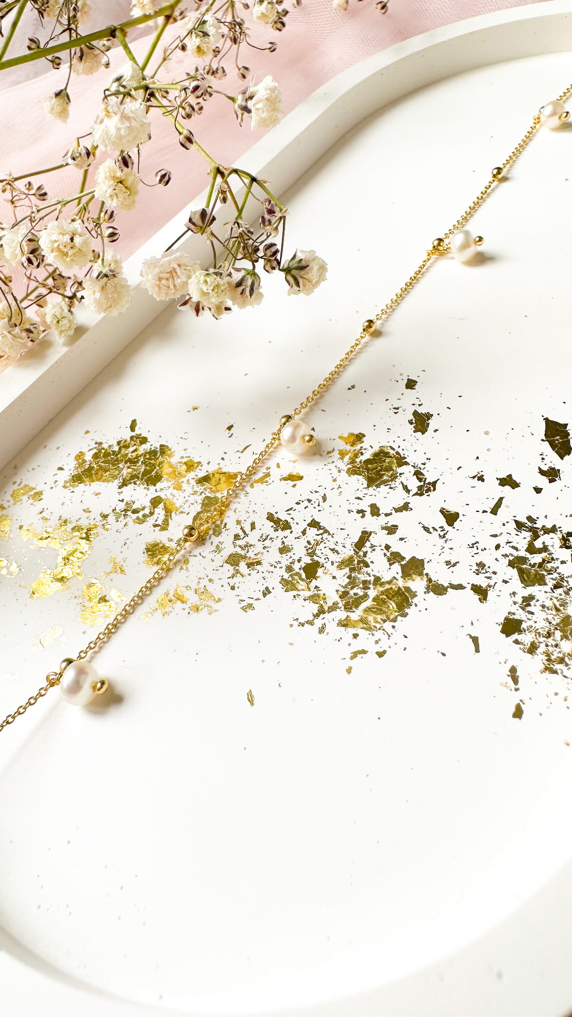 Bransoletka srebrna ARIEL z perłami naturalnymi - pozłacana