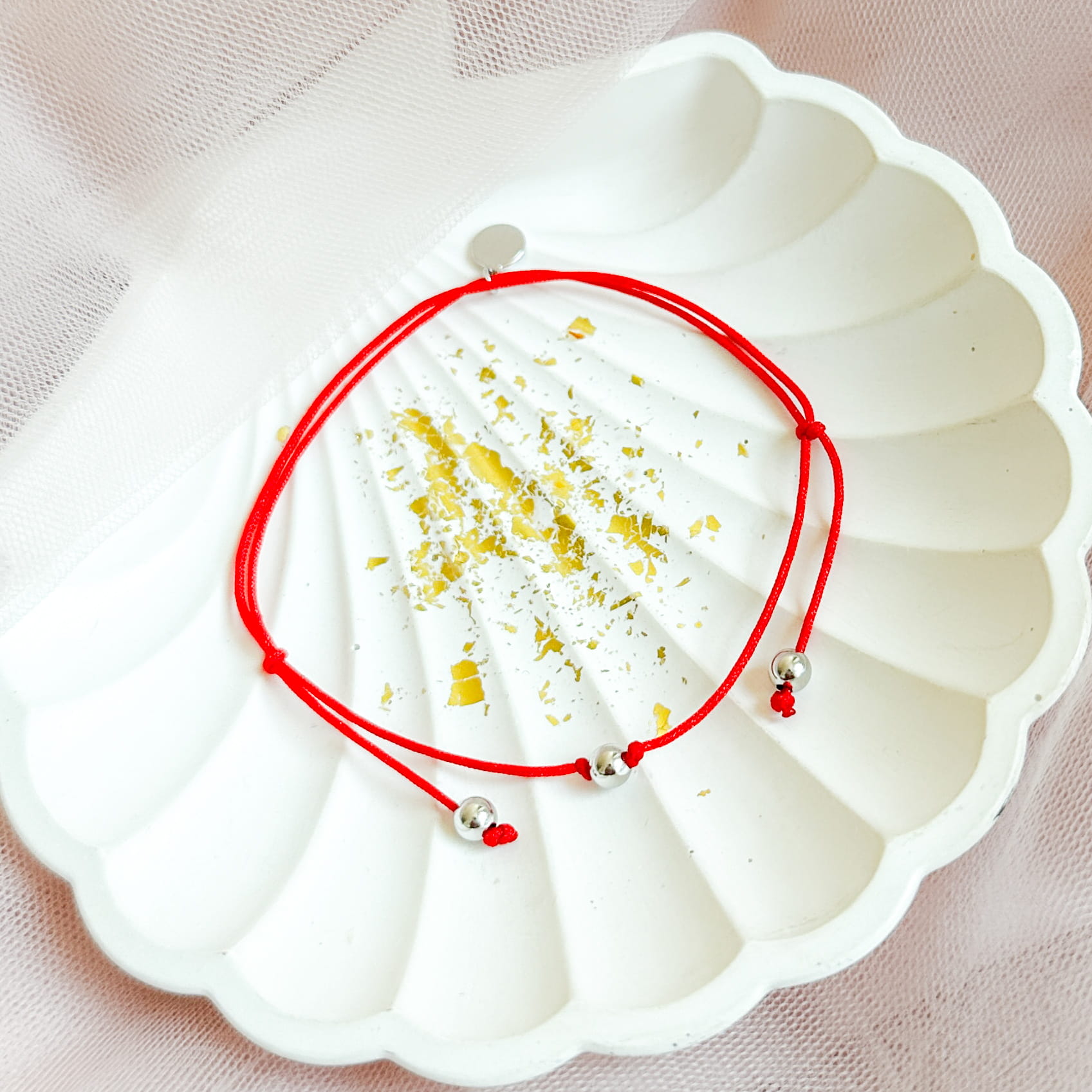 Czerwony sznurek symbolizuje ochronę, a kulka przyciąga dobrą energię i wspiera w ważnych momentach.