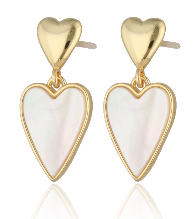 Kolczyki srebrne serca wiszące z masą perłową KISS & SHINE - pozłacane