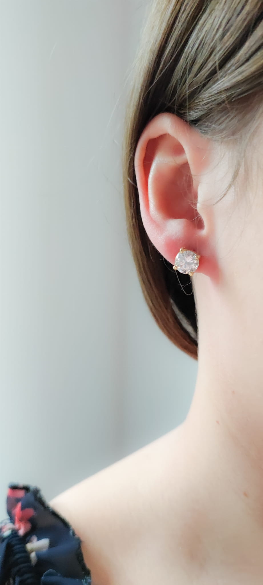 Kolczyki srebrne z cyrkonią 8 mm - pozłacane
