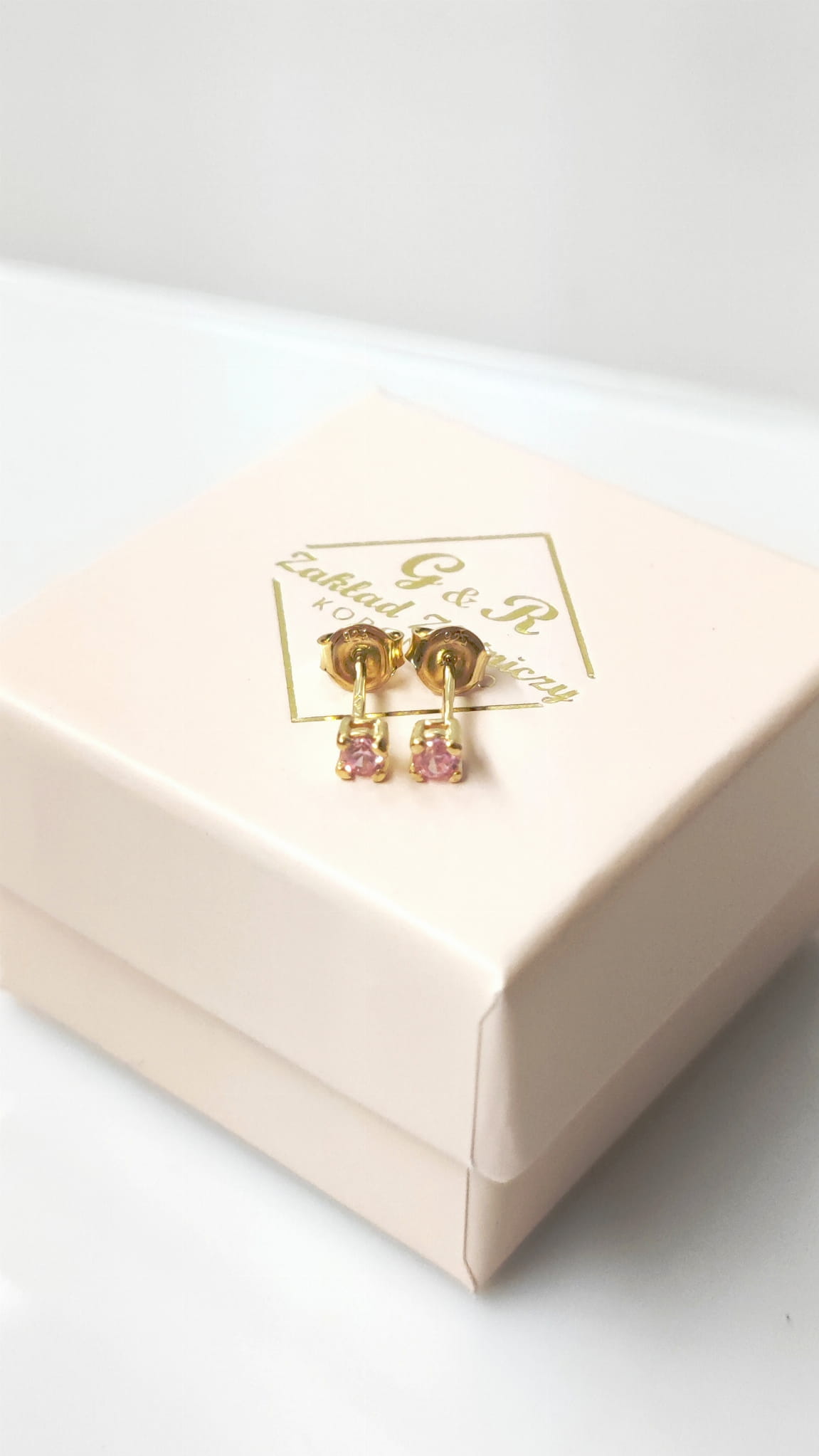 Kolczyki srebrne z cyrkonią PINK 3 mm - pozłacane