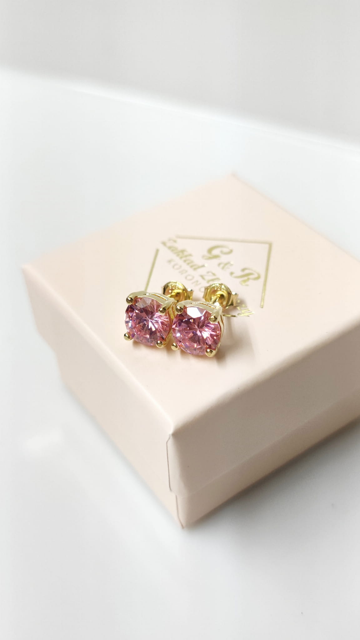 Kolczyki srebrne z cyrkonią PINK 8 mm - pozłacane
