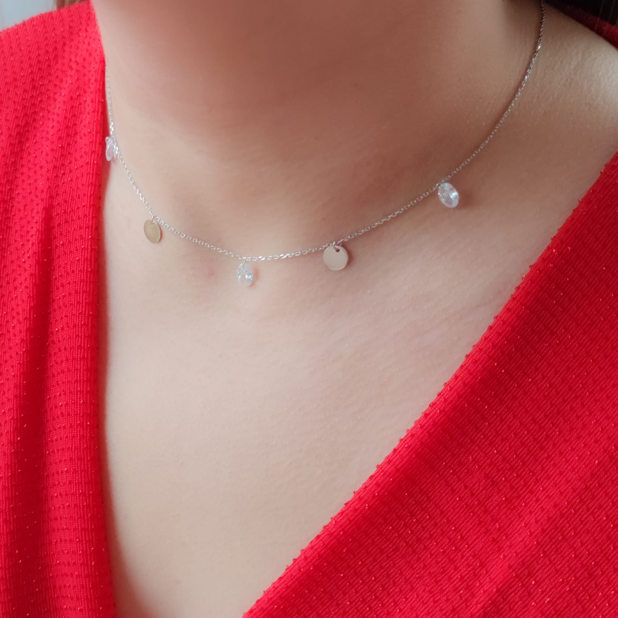 Naszyjnik SCARLETT srebrny z kryształkami i blaszkami