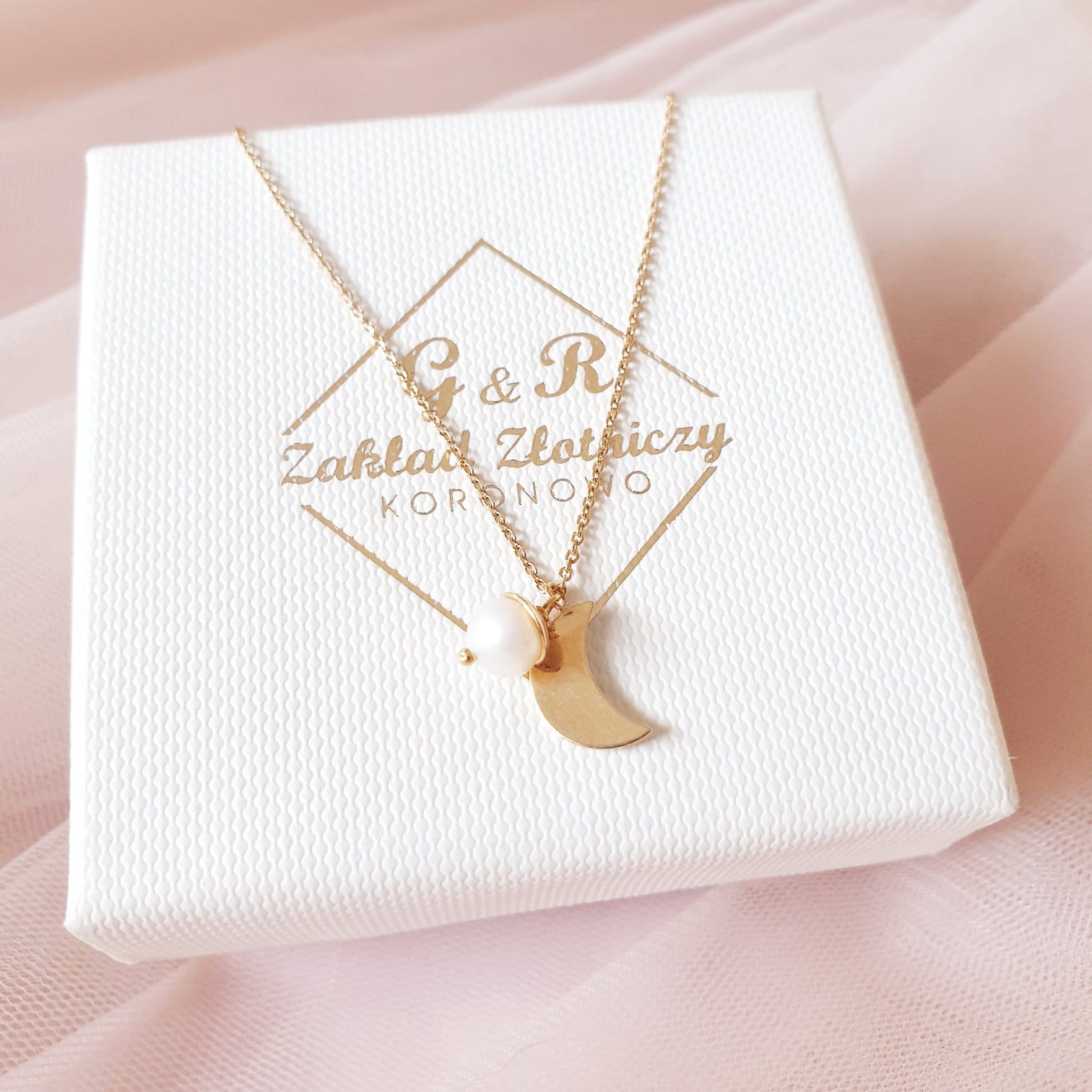 Naszyjnik srebrny Classy z księżycem i perłą - pozłacany