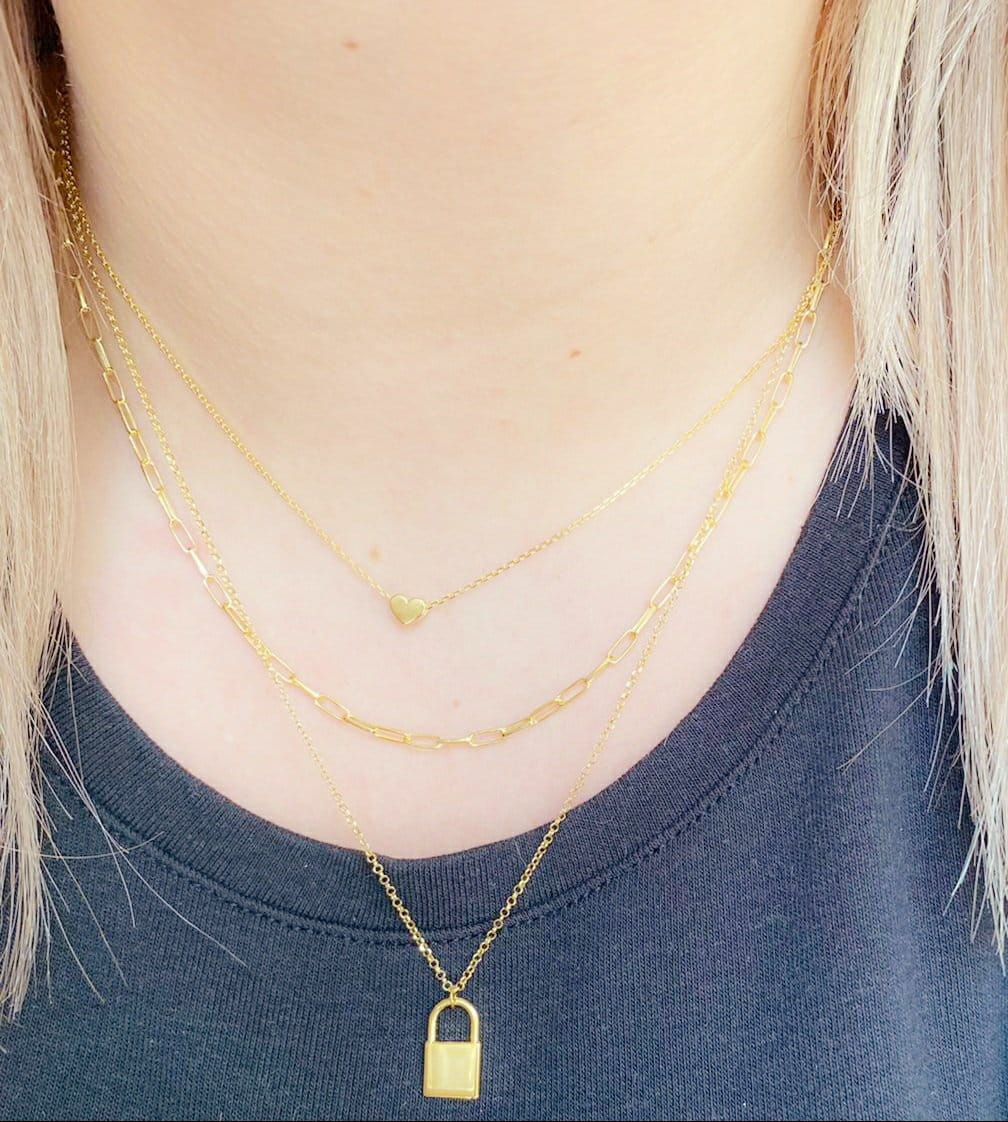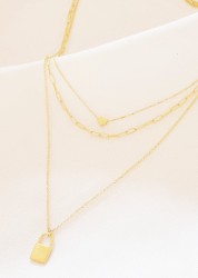 Naszyjnik srebrny POTRÓJNY Z SERCEM I KŁÓDKĄ - pozłacany