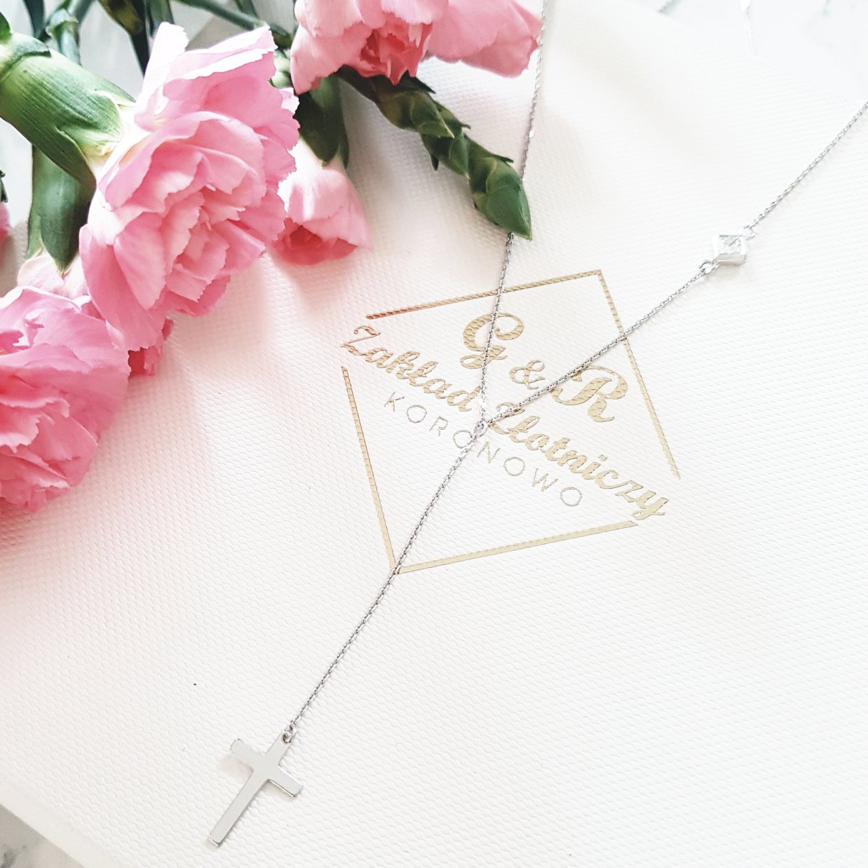 Naszyjnik srebrny krawatka z krzyżykiem i cyrkonią