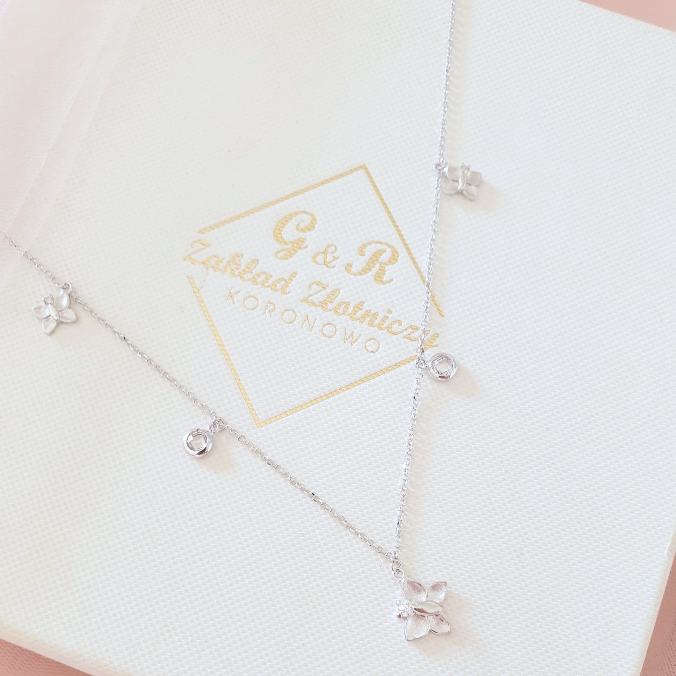 Naszyjnik srebrny z motylkami i cyrkoniami