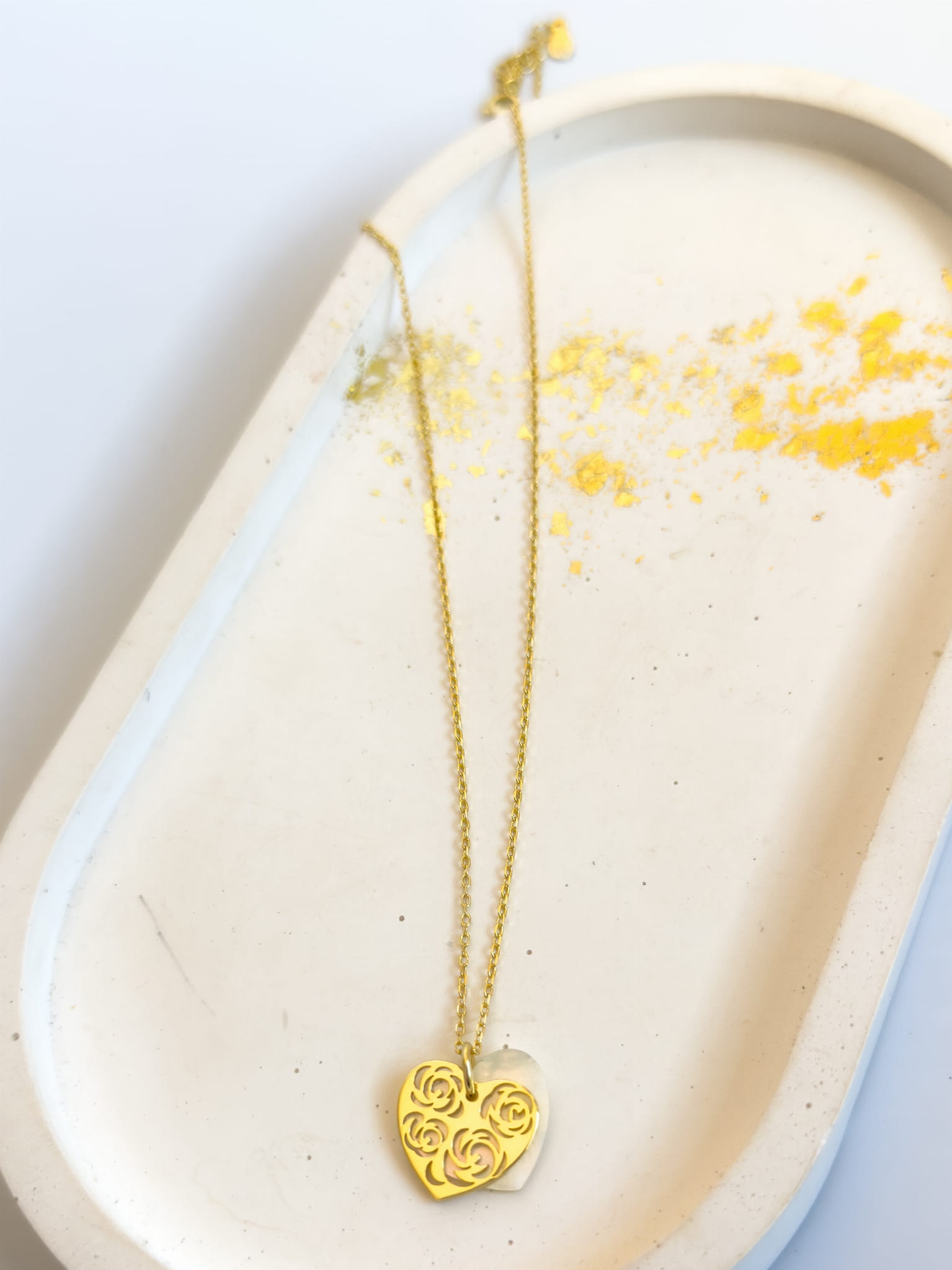 Naszyjnik srebrny z sercem z masą perłową - pozłacany