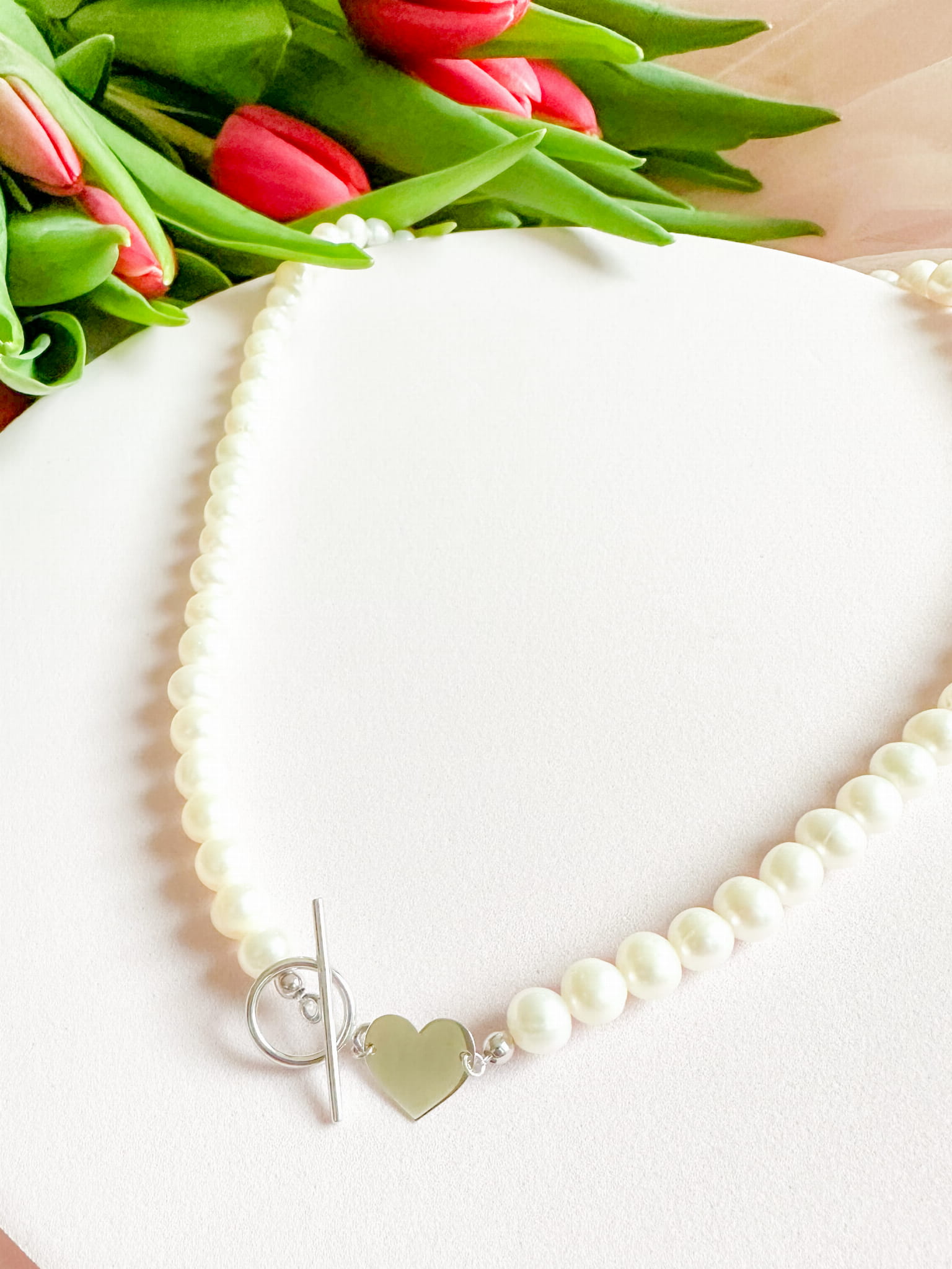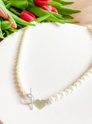 Naszyjnik z pereł hodowlanych ze srebrnym sercem