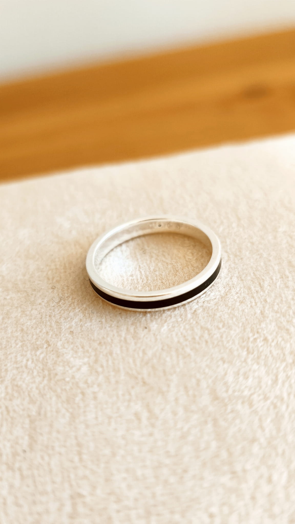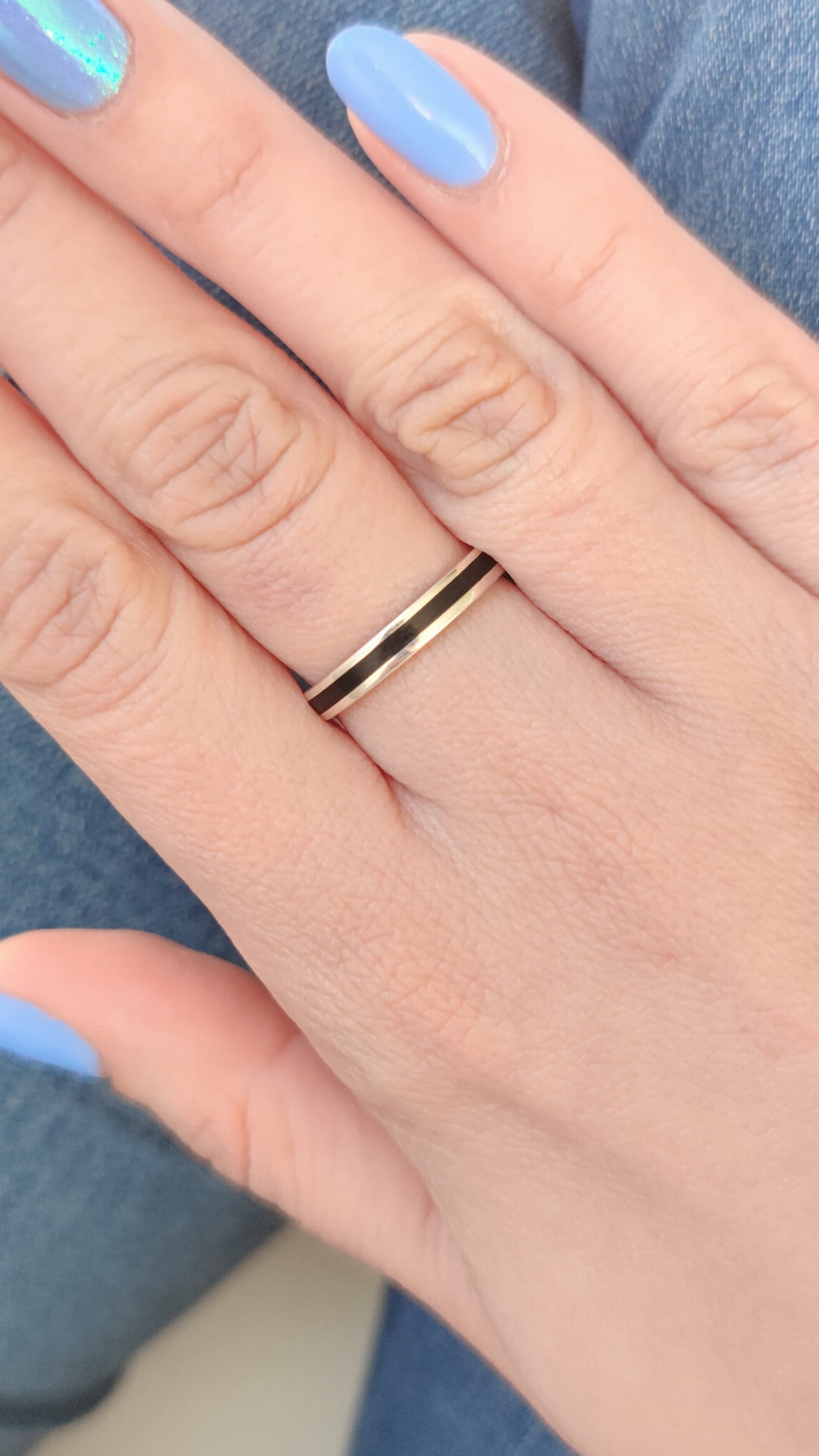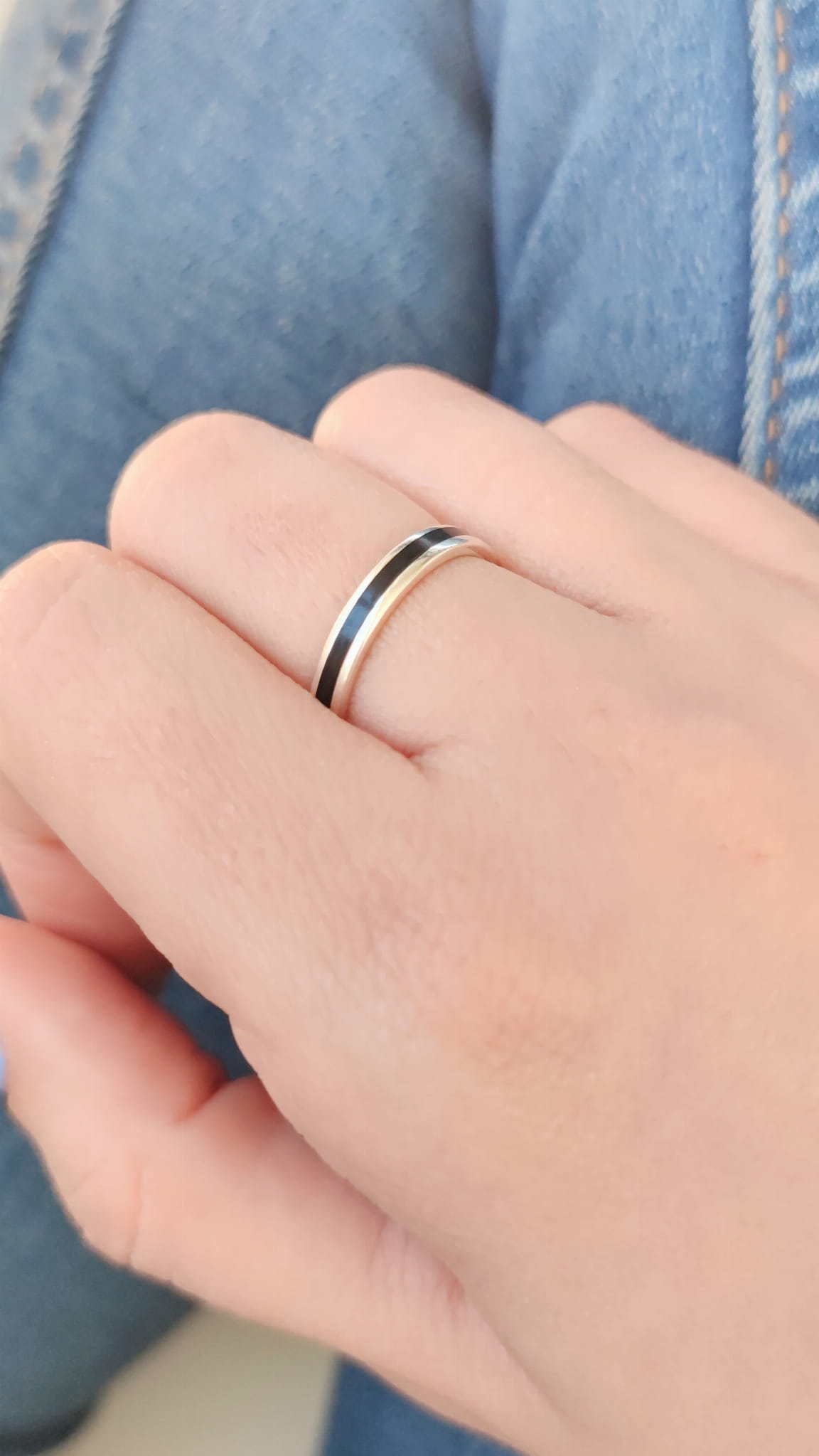 Pierścionek srebrny obrączka BLOOM z emalią czarną