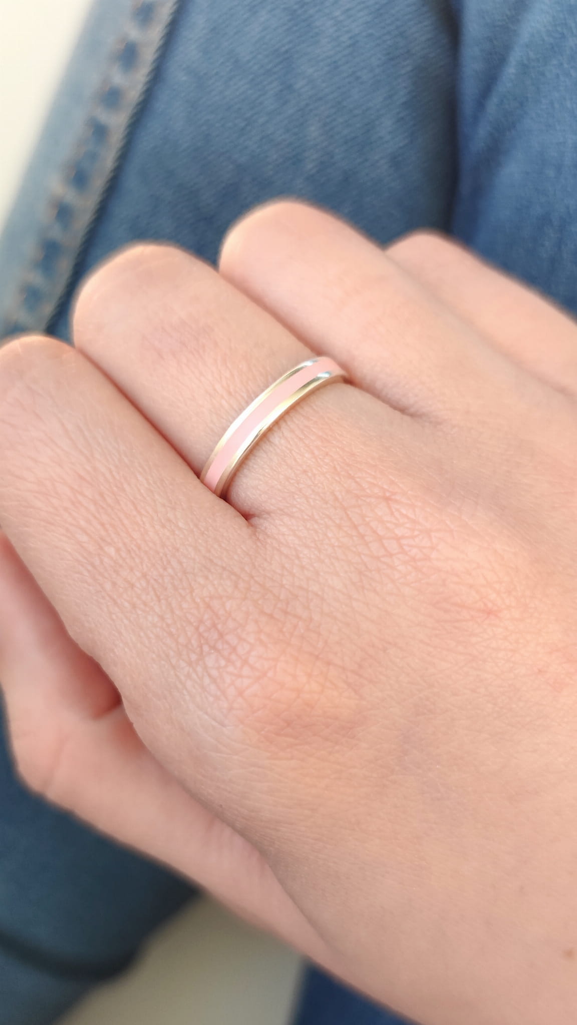 Pierścionek srebrny obrączka BLOOM z emalią róż