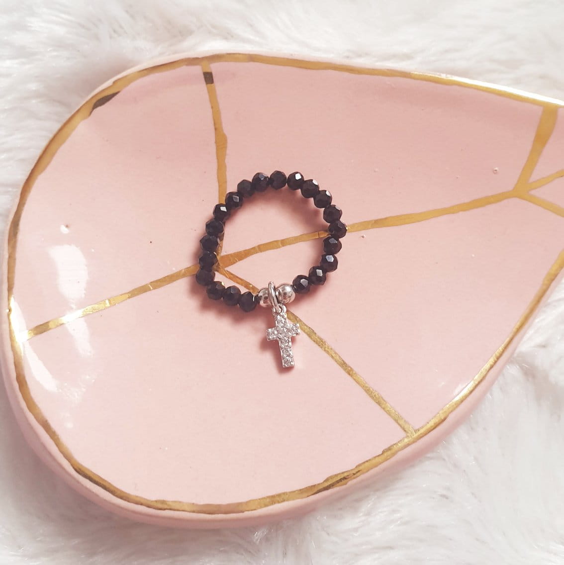 Pierścionek ze spineli z krzyżykiem i cyrkoniami