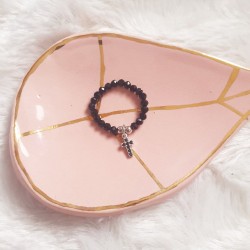 Pierścionek ze spineli z krzyżykiem i onyksami